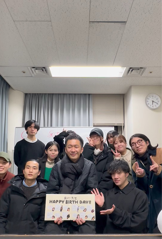 ゼミ活動開始から、みんなと3331アーツ千代田や熱海のエリアリノベの視察に行ったり、ゲストをお呼びして講義を聞いたり、また、ゼミ活動のメインである設計コンペについて激論したりと、半年程度ですが密度の濃い活動をおこなってきましたが、まさか、このようなイベントを裏で企画してくれていたかと思うと、本当に嬉しく思いました。奥村ゼミのみなさん、心のこもったお祝いをしてくれて本当にありがとう。ゼミのみんなが大好きです。これまでの人生で最も素敵な誕生日のお祝いをしてもらいました。