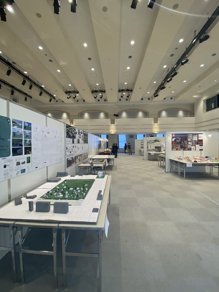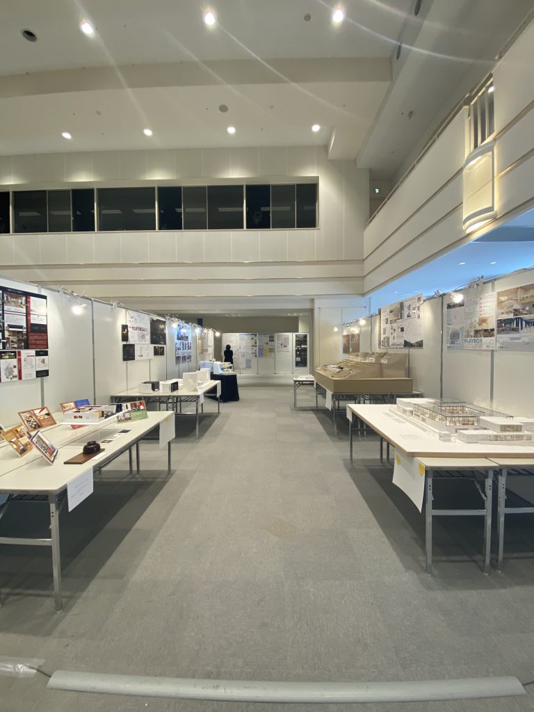 建築・インテリア学科の展示だけではなく、デザイン造形学科のメディア、映像、ジュエリーに関する展示も一緒におこなっております。建築・インテリア学科では、模型の迫力やプレゼンボードの綿密な計画をご覧いただけると思います。
