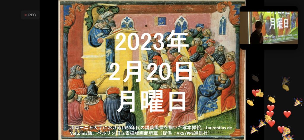 とても興味深く、これからの日本の建築産業界にとって極めて重要な内容にも関わらず、笑いを交えた先生の独特な話し方に引き込まれてしまいました。2時間では到底もったいなく、1コマ14回に分けて拝聴したいと思いました。私も松村先生のような楽しい講義をしていかなければならないと、深く思いました。zoomの画面でこれだけ多くの拍手やハートマークが流れている画像を初めて拝見しました。